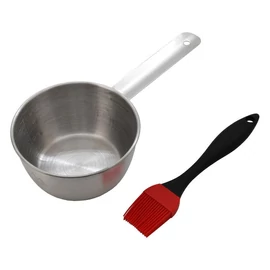 A szett egy 500 ml-es rozsdamentes acél edényt tartalmaz, amely alkalmas pácok, szószok vagy olajok tárolására.