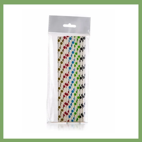 25 db 6 mm átmérőjű, 197 mm hosszúságú papír szívószál biológiailag lebomló papírból készül. A papírszívószálak ideálisak születésnapi bulikra, bulikra és esküvőkre. A szívószálakat vegyes színben szállítjuk: pöttyös: piros, kék, zöld, fekete.