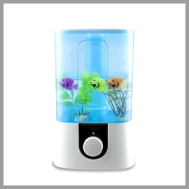 A készülék alján lévő vezérlőgombbal egyszerűen szabályozható a párásítás intenzitása, miközben beépített éjszakai fény funkciója kellemes hangulatvilágítást nyújt alvás közben.