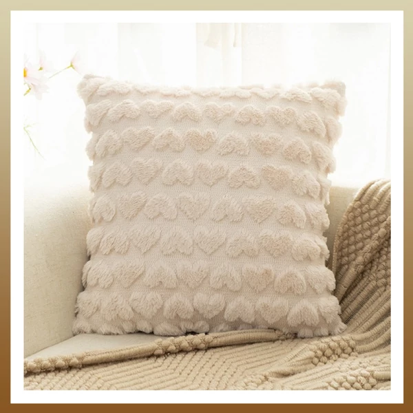 Párnahuzat nyomott mintás krémszinű szív 45 x 45 cm POD149