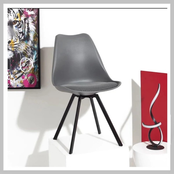 Ez a párnázott műanyag szék modern és letisztult megjelenésével tökéletes választás otthoni és irodai használatra egyaránt. A szürke színű, ergonomikus kialakítású ülőfelület kényelmes ülést biztosít, míg a puha párnázás extra komfortot nyújt hosszabb használat során is.
