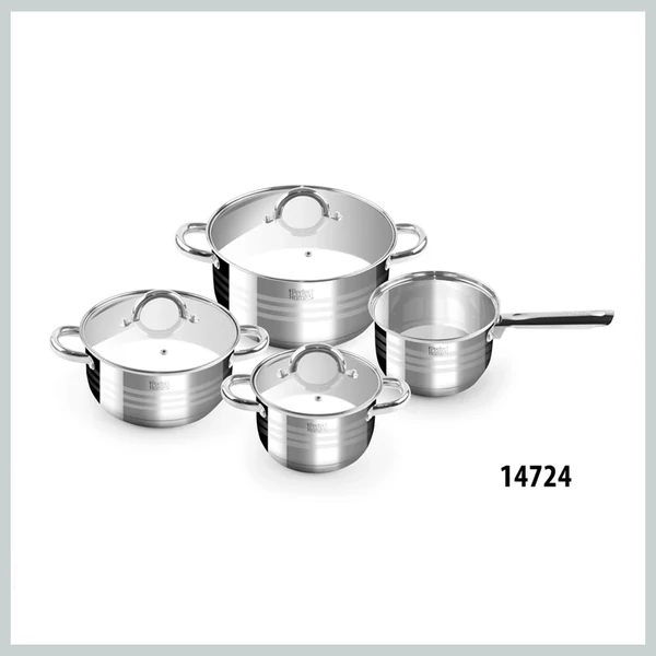 Tartalma: 3 db különböző méretű lábas, 1 db nyeles lábas; 3 db üvegfedő