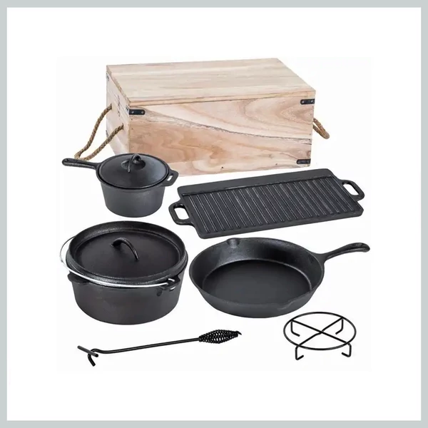 Perfect Home Öntöttvas BBQ Grill szett fa dobozos 6+1 részes / Holland sütő szett 28340