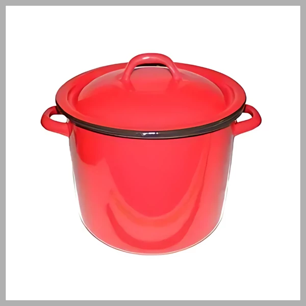 Ez a piros zománcozott fazék praktikus és tartós konyhai edény, amely ideális levesek, főzelékek és egytálételek készítéséhez. A zománcozott acél belső és külső bevonata ellenáll a savaknak és könnyen tisztítható, így hosszú távon is higiénikus megoldást nyújt.