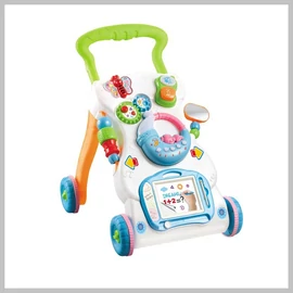 Interaktív járássegítő, 50 x 27.5 x 27 cm, oktatópanellel, Segíti a motoros készségek fejlesztését, Segítség az önálló járás megtanulásában, Szimbolikus kiegészítők, amelyek biztosítják a kicsik szórakozását.