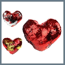 Plüss szív párna - fordítható flitterekkel, 20 cm 41251
