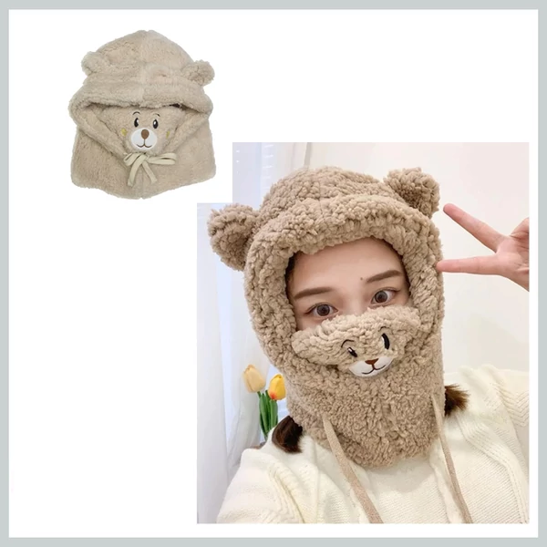 Plüss téli sapka mackófülekkel + nyakmelegítő CZ34WZ1