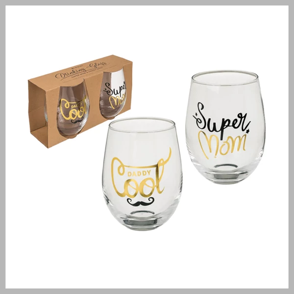 Termékleírás: 2 darabos víz/italpohár szett Super Mom & Daddy Cool felirattal, átlátszó, 7 x 9 cm, 300 ml. Tökéletes ajándék apák napjára/anyák napjára. Alkalmas vízhez, üdítőkhöz, gyümölcslevekhez. Űrtartalom: kb. 300 ml (30 cl). Méretek: kb. 7 x 9 cm, anyag: üveg.