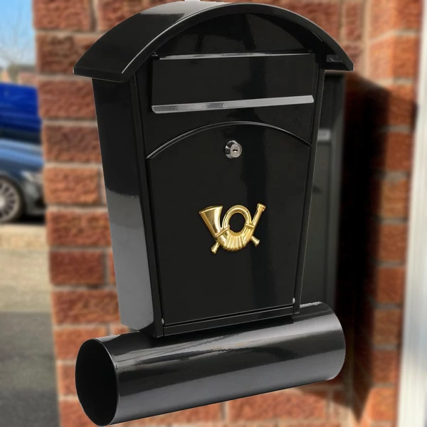 0,6 mm vastag acéllemezből készült postaláda lekerekített tetővel, praktikus tálcával újságok és szórólapok tárolására.