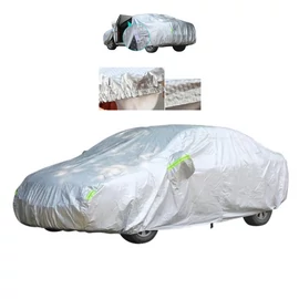 Az alumínium fólia jó napfényálló, a poliészter taft 100%-ban vízálló, a PP pamut védi a jármű fényezését. Többfunkciós kialakítás, vezetőoldali ajtó cipzár a könnyű hozzáférésért, első és hátsó kerék szélálló kötél, hogy megvédje az autó burkolatát az erős széltől. Figyelmeztető fényvisszaverő csíkok,