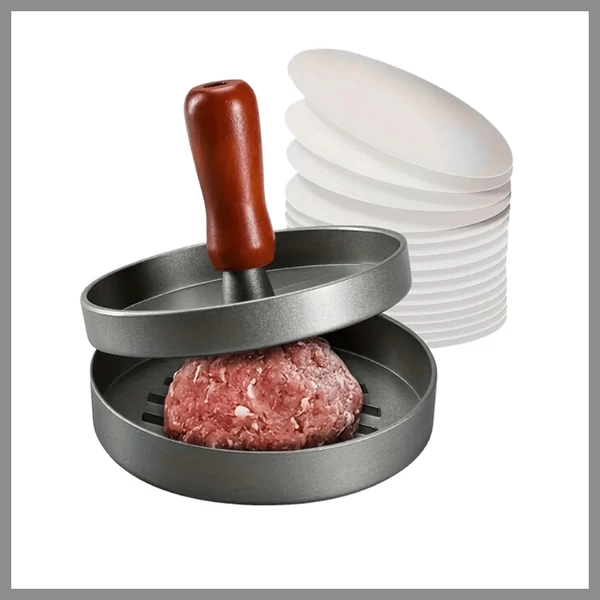 Ez a prémium hamburgerprés és pogácsa elválasztó papír készlet tökéletes segítőtárs minden otthoni szakácsnak, aki szeretné könnyedén elkészíteni a tökéletes hamburgereket és egyéb húsos pogácsákat. A tapadásmentes hamburgerprés segít abban, hogy a húspogácsák egyenletesek és formásak legyenek, míg az elválasztó papírok biztosítják, hogy a pogácsák ne ragadjanak össze, így könnyedén tárolhatók vagy süthetők.