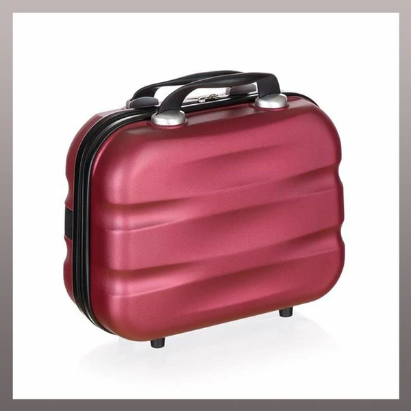 15 hüvelyk méretű, bordó színben, kiváló minőségű ABS műanyagból készült, amely ütésálló. A táska 2 műanyag fogantyúval és cipzárral záródik. Az aktatáska belső részén cipzárral záródó szövet válaszfal található.