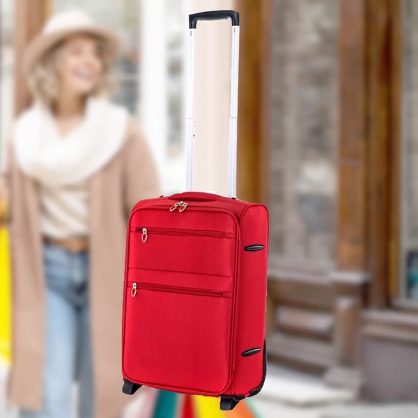 A piros színű TEX15 S méretű utazóbőrönd textilből készült, amelyet különösen azok az utazók értékelnek majd, akiknek fontos a kis csomagsúly. 2 kerékkel van felszerelve a csomagok könnyű mozgatása érdekében. A bőrönd 2 textil fogantyúval (oldalsó és felül) és 1 műanyag fogantyúval rendelkezik, teleszkópos fogantyúval, behelyezés elleni zárral és több pozícióban állítható magassággal. A szövet rugalmasságának köszönhetően a csomagtartó tér állítható. Belül rögzítő pántokat és egy belső zsebet talál a dolgai jobb rögzítéséhez és rendszerezéséhez. Két külső zsebe is van a kisebb tárgyaknak. A bőrönd cipzárral záródik.