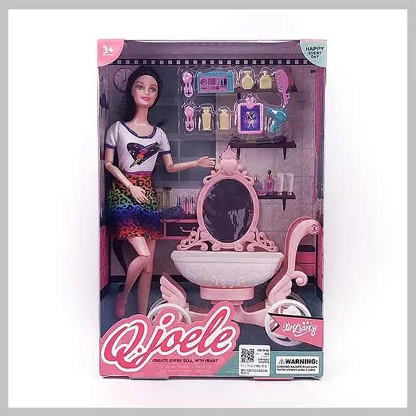 A Q. Joele divatbaba egy elegáns és modern stílusú baba, amely egy gyönyörű sminkasztallal és kiegészítőkkel érkezik. A készlet ideális szerepjátékhoz, lehetőséget biztosítva a gyermekek számára, hogy kreatívan alkossanak és elképzeljék, hogyan készíthetnek el egy tökéletes frizurát és sminket.