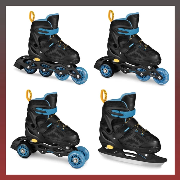 Spokey QUATTRO egy modern megoldás - velük gyermeke nyáron és télen is aktívan töltheti az idejét a jégpályán. két cserélhető talp : korcsolyázás és görkorcsolyázás , amely három különböző módon konfigurálható! A QUATTRO tehát Korcsolyázás (acél hoki futóval), görkorcsolya (4 kör egymás után), görkorcsolya (kerekek a csúszótalp oldalán) és görkorcsolyázás (Elöl 2 kerék egy sorban, hátul csúszótalpak az oldalakon). Nagyszerű választás azoknak a gyerekeknek, akik szeretnek korcsolyázni a jégpályán, és tavasszal vagy nyáron szívesen töltik az idejüket aktívan a szabadban.