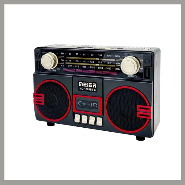 A MEIER MD-1305BT-S egy klasszikus megjelenésű, mégis modern funkciókkal felszerelt hordozható rádió. A retró kazettás rádió dizájnját ötvözi a mai technológiával, így Bluetooth, USB, SD és FM/AM/SW vételi lehetőségeket is kínál.