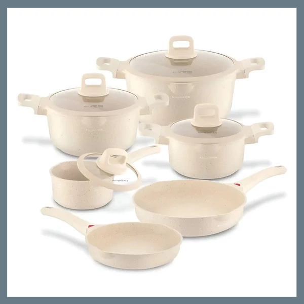 Royalty Line – 10 Részes Indukciós Edénykészlet Márvány Bevonattal szilikon fogantyúval, krémszínű RL-T10C