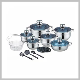 Royalty Line 18 darabos rozsdamentes acél főzőedénykészlet üvegfedővel RL-1801B