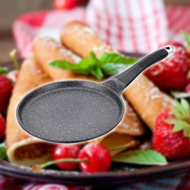 A Royalty Line palacsintasütővel gyorsan készítheted el a finom falatokat, amellyel időt spórolhatsz, a márvány bevonatnak köszönhetően a tészta nem ragad le és nem szakad el. Zsiradék hozzáadása nélkül is kiváló, kalóriaszegény palacsintákat alkothatsz, így megúszhatod a palacsintasütés során keletkező zsírfoltokat.