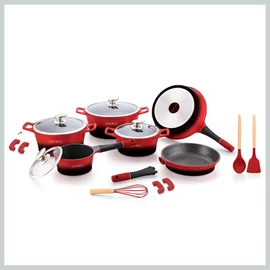 Royalty Line RL-ES1014MR 17 darabos márvány bevonatú edénykészlet - piros