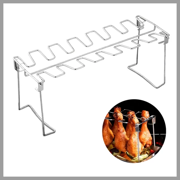 Ez a praktikus csirkecomb és szárnyas állvány ideális választás grillezéshez és sütéshez, lehetővé téve, hogy a hús egyenletesen átsüljön, miközben a felesleges zsír lecsöpög. Rozsdamentes acélból készült, így tartós, könnyen tisztítható és higiénikus megoldást kínál a konyhában és a kertben egyaránt.
