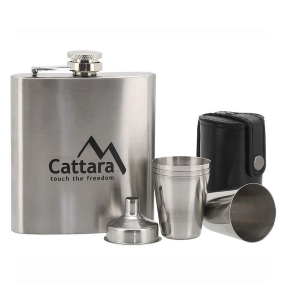 A polírozott rozsdamentes acél test elegáns megjelenést kölcsönöz, és időtálló használatot garantál. A készlet része egy tokban tárolt 4 db rozsdamentes acél pohár (egyenként kb. 4 cl űrtartalommal), így bárhol megoszthatod az italt barátaiddal. A mellékelt tölcsér segítségével az italok könnyen és tisztán utántölthetők.