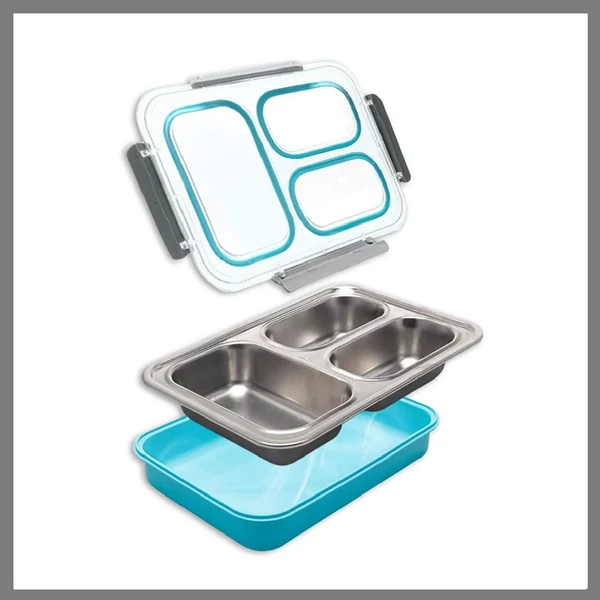 1,2 literes szivárgásmentes, rozsdamentes acél ebédlődoboz 3 kivehető rekesszel