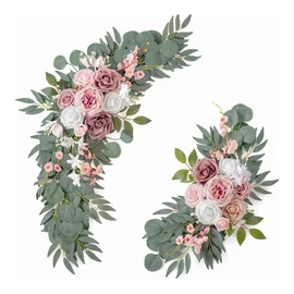 Elegáns és természetes hatású selyemvirág dekorációs szett, amely két darabból áll – egy nagyobb (60 cm) és egy kisebb (40 cm) elrendezésből. A kompozíció finom rózsaszín, fehér és mályva árnyalatú rózsákból, apró virágokból és gazdag zöld lombozatból áll, melyek együtt harmonikus, romantikus megjelenést kölcsönöznek bármely térnek.