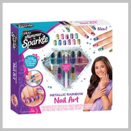 A Shimmer 'n Sparkle Metál Szivárványos Köröm Készlet tökéletes választás a divat és szépség iránt érdeklődő gyerekek számára. A szett segítségével csodás, metálfényű és szivárványos körmöket alkothatnak, így egyedi és trendi megjelenést varázsolhatnak maguknak.