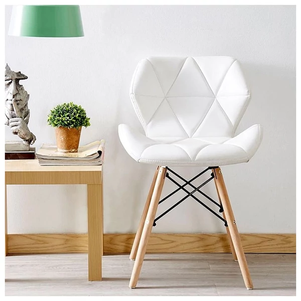 Skandináv Stílusú Konyhai Szék – Fa Vázzal, Fehér Ökobőr Kárpittal 073M