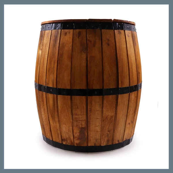 Ez a természetes fából készült, masszív és stílusos hordó egyszerre funkcionál stabil asztalként és praktikus napernyőtartóként.