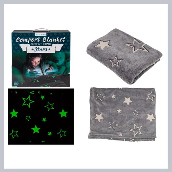 Pihe-puha, csillagokkal díszített takaró, sötétben világít, kb. 135 x 173 cm, díszdobozban.