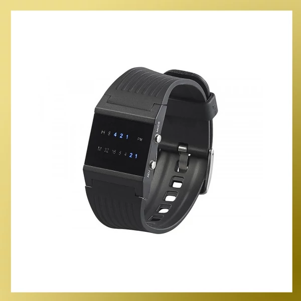 Az innováció és a dizájn egyértelmű nyilatkozata: A futurisztikus bináris óra különösen elegáns módon ötvözi a sportos eleganciát a technikai kifinomultsággal.