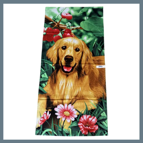 Strand törölköző 70 x 140 cm - Kutya és virág mintás 1761