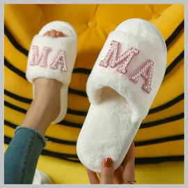 Kényelmes plüss „Mama” papucs strasszköves díszítéssel – csúszásmentes, puha benti házicipő nőknek, ajándék édesanyáknak – elérhető méretek: 37, 39, 41, 42
