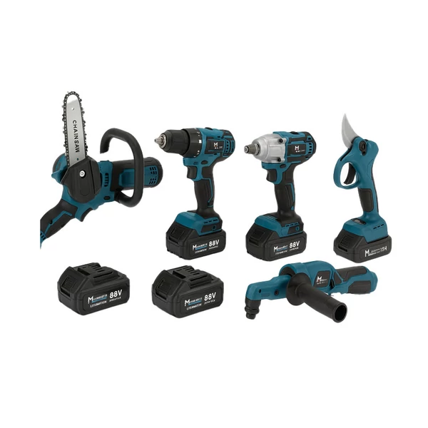 A SUPAMASTER SM-555 egy komplett, 5 az 1-ben akkumulátoros szerszámkészlet, amely tartalmazza a legfontosabb vezeték nélküli gépeket: fúrót, ütvecsavarozót, sarokcsiszolót, láncfűrészt és metszőollót. Kiváló választás barkácsolóknak és szakembereknek egyaránt, hiszen mindent egyetlen praktikus szettben kínál a gyors, hatékony munkavégzéshez.