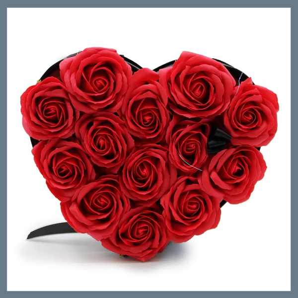 Szappanvirág ajándékcsokor - 13 piros rózsa - szív alakú GSFB-02