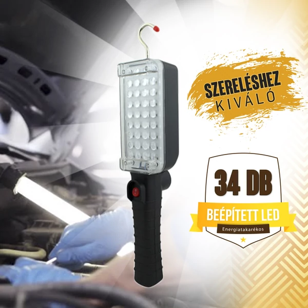 Próbáld ki ezt a remek szerelőlámpát amivel Bármilyen területet megvilágíthatsz. Nappal és éjszaka egyaránt hatékony hiszen a beépített 34db led tökéletesen megvilágít minden felületet és rést. A mágnessel vagy az akasztókampóval válik még inkább hatékonnyá a lámpa, hiszen olyan felületekhez is könnye rögzíthető ahová a legtöbb szerelőlámpa nem. Robosztus kialakítással járul hozzá a hosszú távon való tartóssághoz.