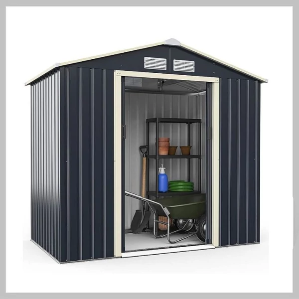 A fém kerti szerszámosház tökéletesen alkalmas a szabadban szükséges szerszámok, kiegészítők és felszerelések széles választékának tárolására. Elég tágas ahhoz, hogy többek között fűnyírót, kerékpárt, talicskát, kerti kocsit, kerti bútorokat stb. tároljon.