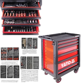 YATO műhelyszekrény, 6 golyóscsapágyas fiókkal, 4 felső fiókban 177 gondosan kiválasztott szerszám található.