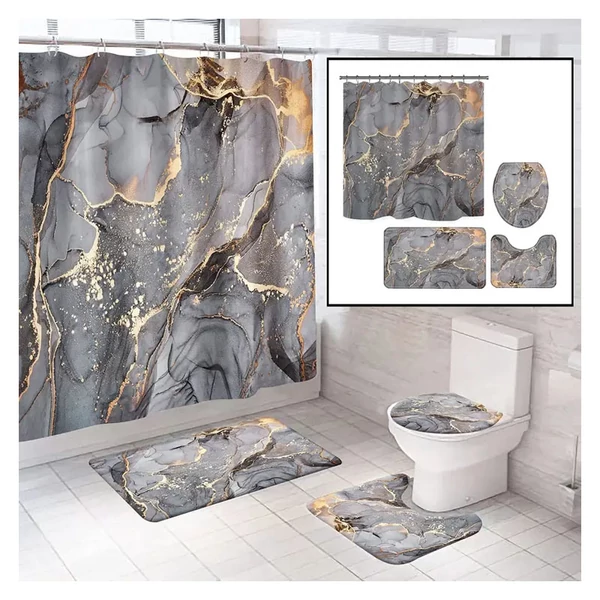Szürke márvány mintás fürdőszobai szett – zuhanyfüggöny és szőnyegek YC2044879