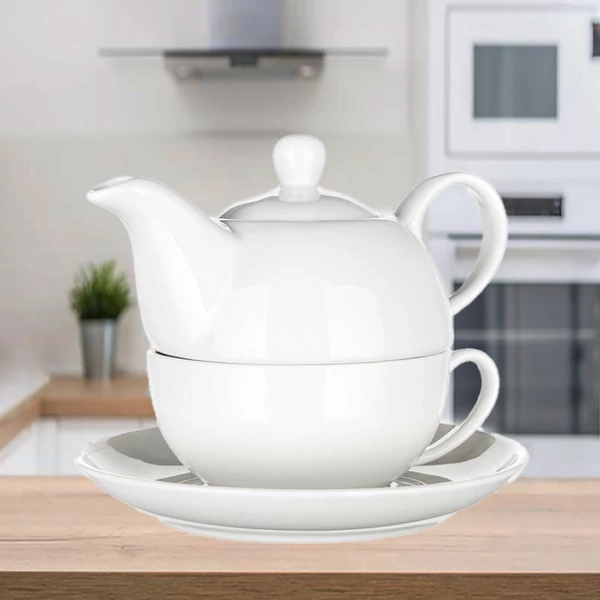 A WHITE teáskészlet kerámiából készült, fehér mázzal.