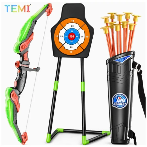 Ez a színes és biztonságos íjász szett ideális választás a gyerekek számára, akik szívesen próbálják ki a célba lövést játékos formában. A készlet tartalmaz egy ergonomikus kialakítású íjat, több tapadókorongos nyilat, egy stabil állványos céltáblát és egy vállra akasztható tegezt. Beltéren és kültéren is kiválóan használható, fejleszti a kéz-szem koordinációt és a koncentrációt.