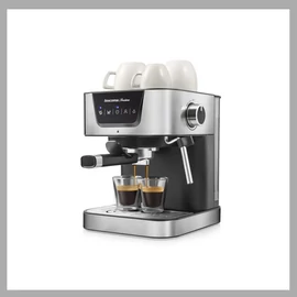 Modern kávéfőző géphez Espresso valamint tejhabos kávéitalok, pl. cappuccino, macchiato, tejeskávé stb. Az 1 és 2 csésze programokat egyszerűen egyénileg beállíthatjuk, kézi működtetéssel a kívánt mennyiségű kávéital elkészíthető. Erőteljes nyomószivattyú, túlhevített gőz- és melegvíz-generátor, nagy víztartály és főzőlap csészékhez. Prémium minőségű rozsdamentes acélból, kiváló minőségű fémből és tartós műanyagból készült.