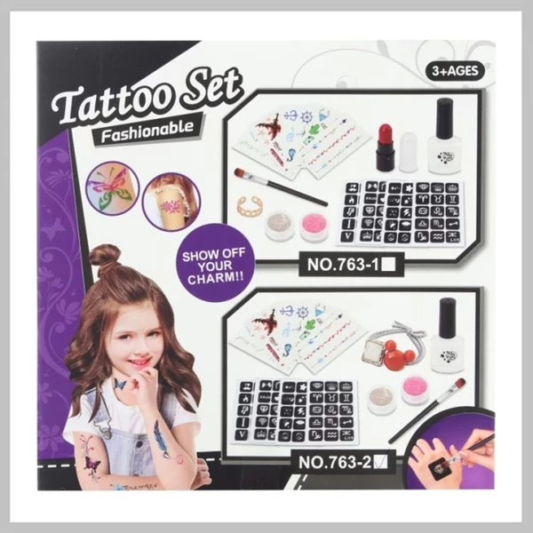 Készítsen gyönyörű csillogó tetoválást minden napra ezzel a lány tetováló készlettel, amely 5 kis tetováló lapot, 4 stencillapot, egy üveg csillogó applikátort, 2 csillogó tálat, egy ecsetet és egy karkötőt tartalmaz. Ezzel a tetováló készlettel gyönyörű csillogó tetoválást készíthet minden napra.