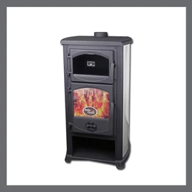 Nagy ablakos szabadon álló lemez kandalló sütővel. Öntöttvas ajtóval, tetővel és lábakkal. A 9,7kw-os teljesítmény elegendő egy kb 50nm-es helyiség befűtéséhez. Kiváló ár-érték arányú termék. Rendkívül esztétikus masszív kandalló.