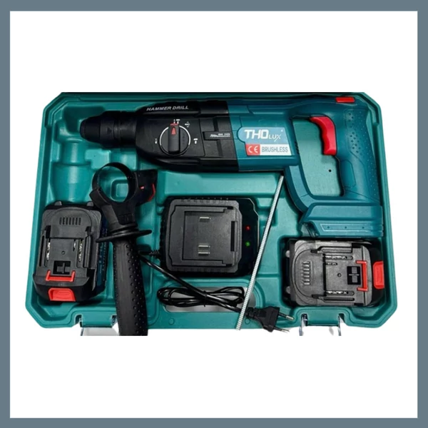 A THO Lux 48 V-os Lithium elektromos ütvefúró kiváló teljesítményt, mobilitást és tartósságot biztosít barkácsolási és professziónális munkákhoz egyaránt. A készülék ergonomikus kialakításának és nagy kapacitású lithium-ion akkumulátorainak köszönhetően kényelmes, vezeték nélküli használatot biztosít, bármilyen helyszínen és körülmények között.