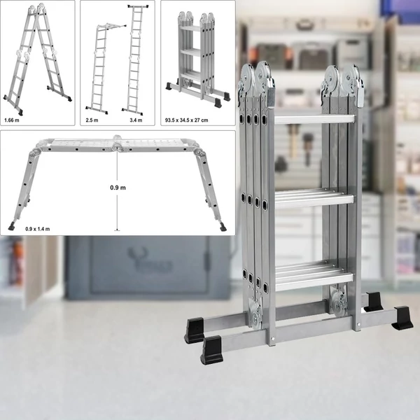 Többcélú összecsukható létra, 4x3 lépcsőfok, 3,4 méter magasságig.