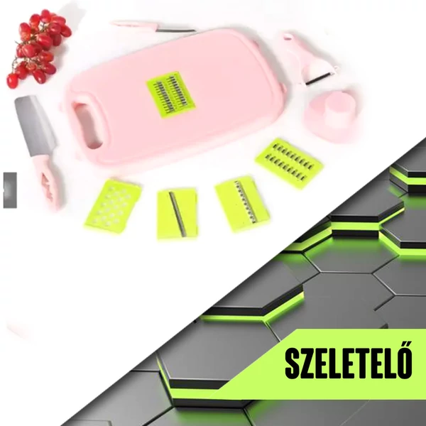 A multifunkciós szeletelő egy többfunkciós zöldségvágó 5 cserélhető tartozékkal, mellyel bármilyen zöldséget vághat, apríthat egy speciális szűrőkosárba, amelyben kényelmesen moshatók és száríthatók a szeletelt darabok.