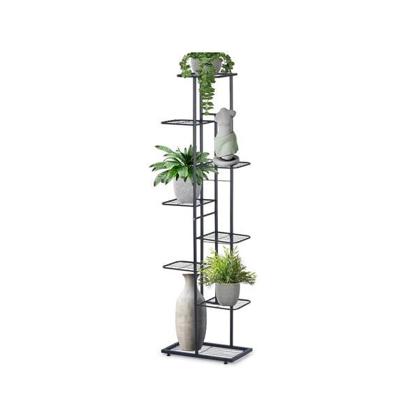 Ez a modern, több szintes növénytartó állvány praktikus és helytakarékos megoldás a növények, dekorációk és egyéb tárgyak tárolására. A függőleges kialakításnak köszönhetően a szűkebb helyeken is kényelmesen elhelyezhető, miközben elegánsan rendszerezi a különböző méretű növényeket vagy dísztárgyakat.